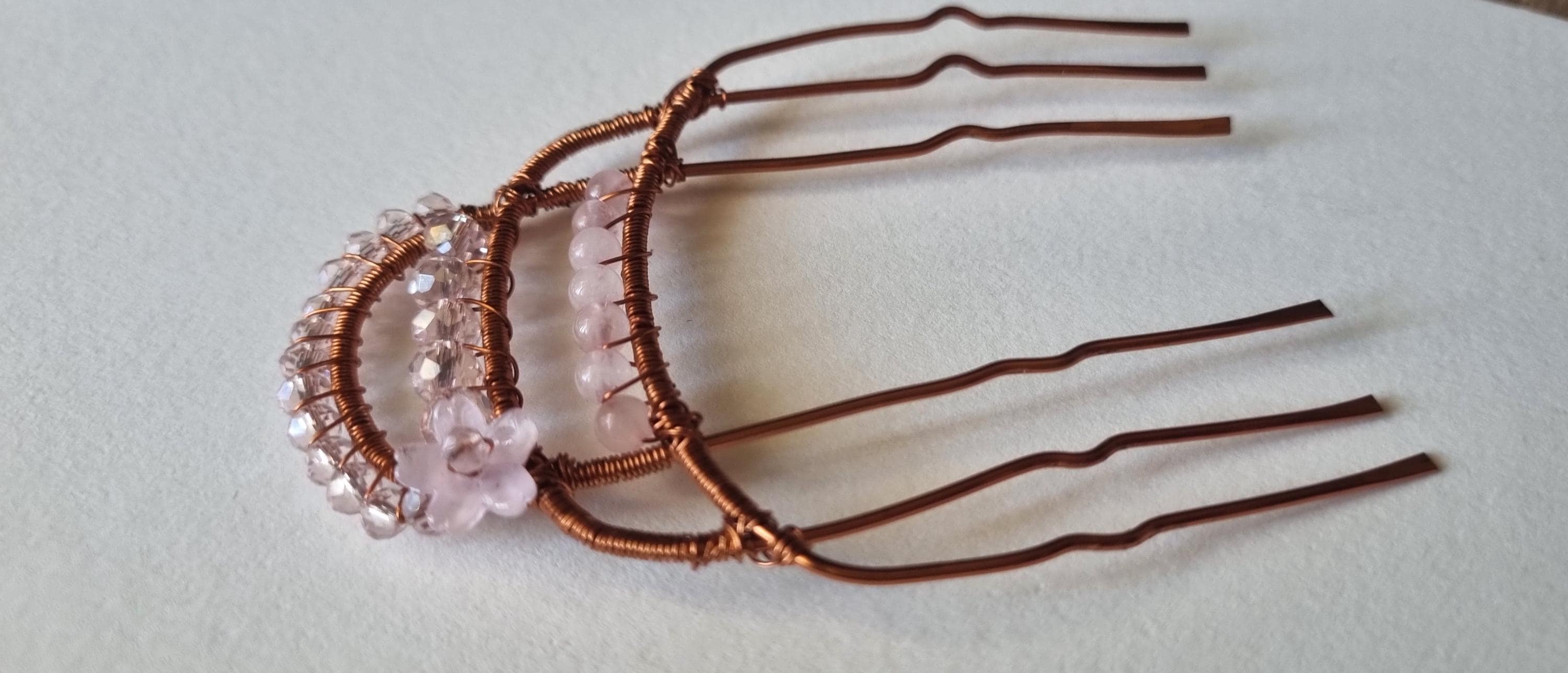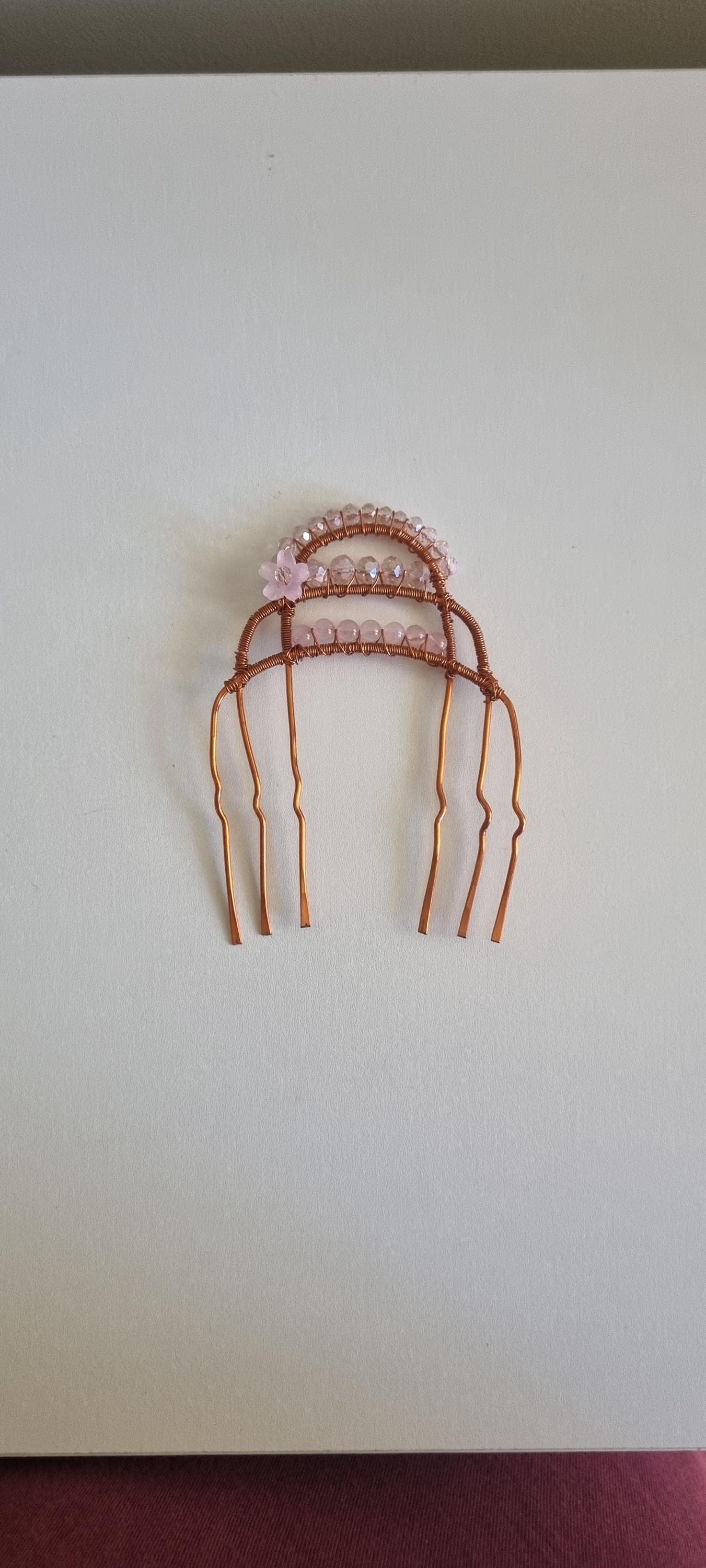 Boho Crystal Hair Comb – Handmade Copper & Pink Bead Hair Accessory