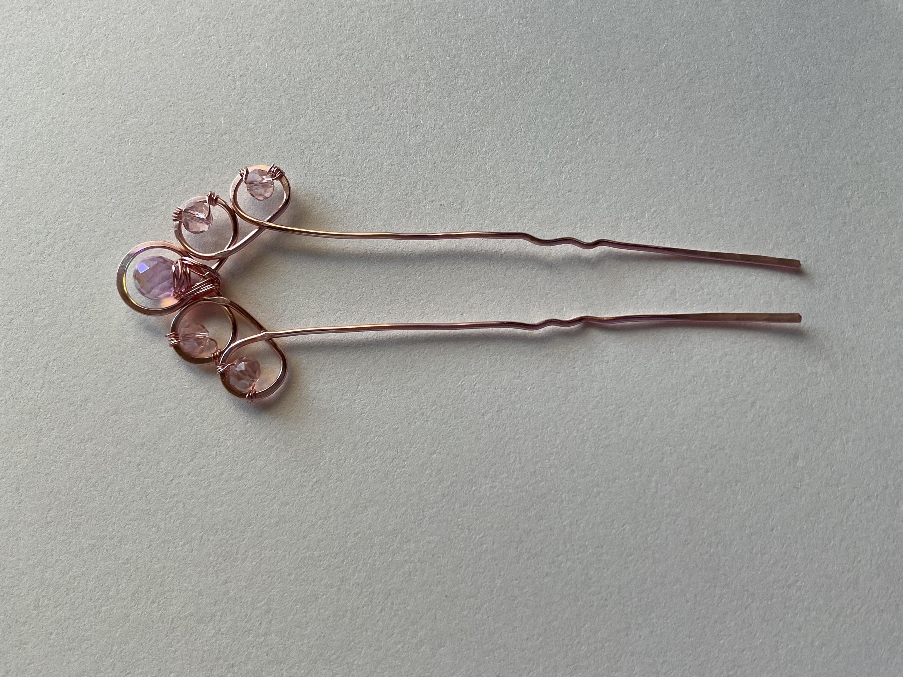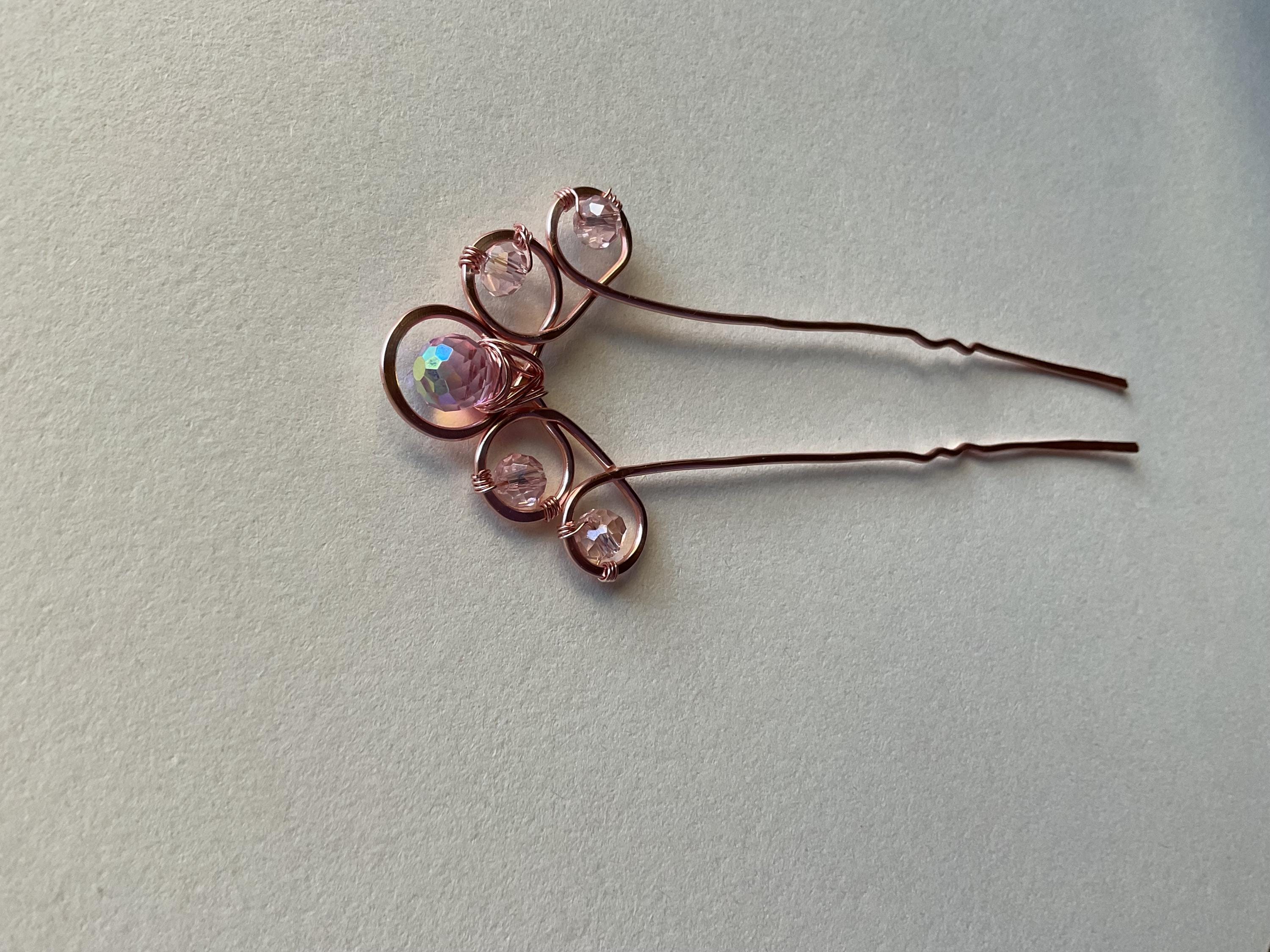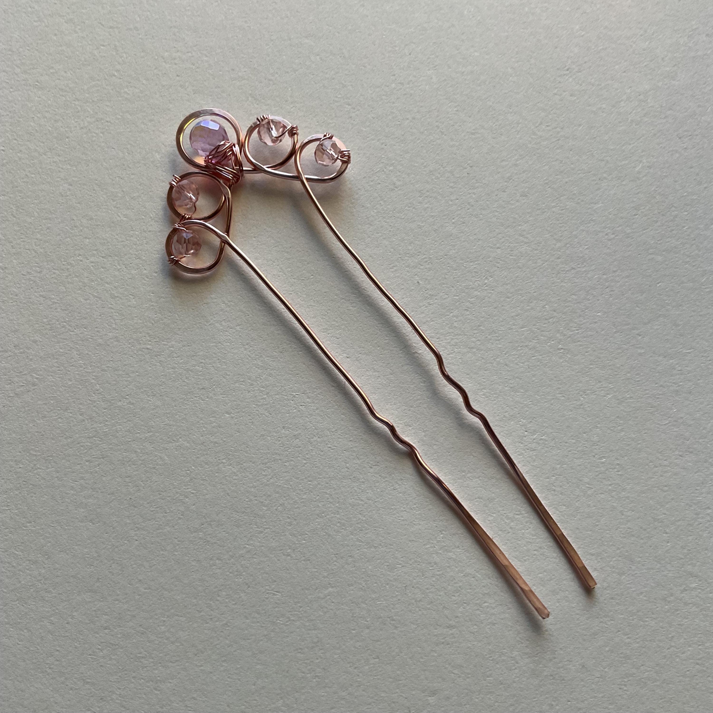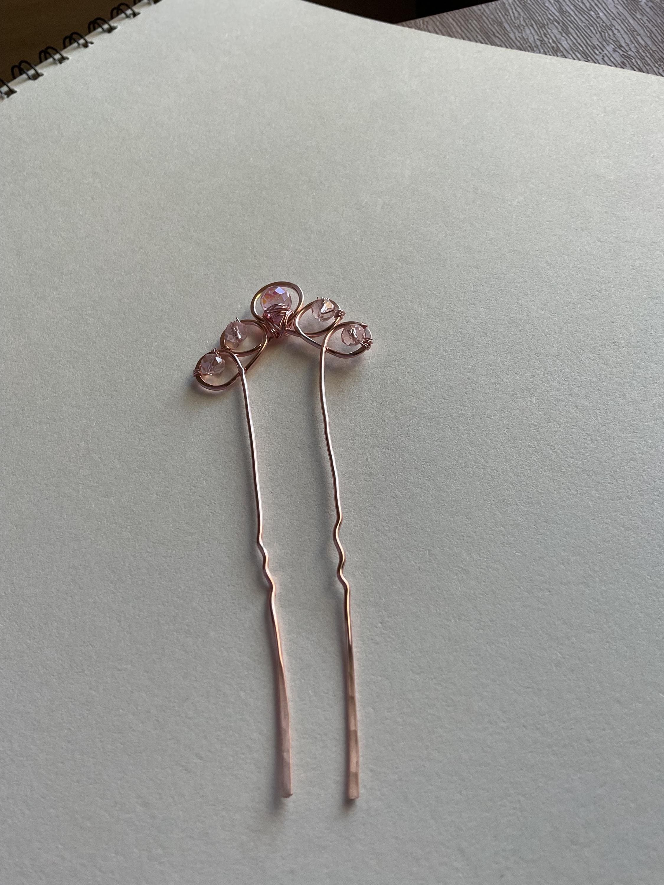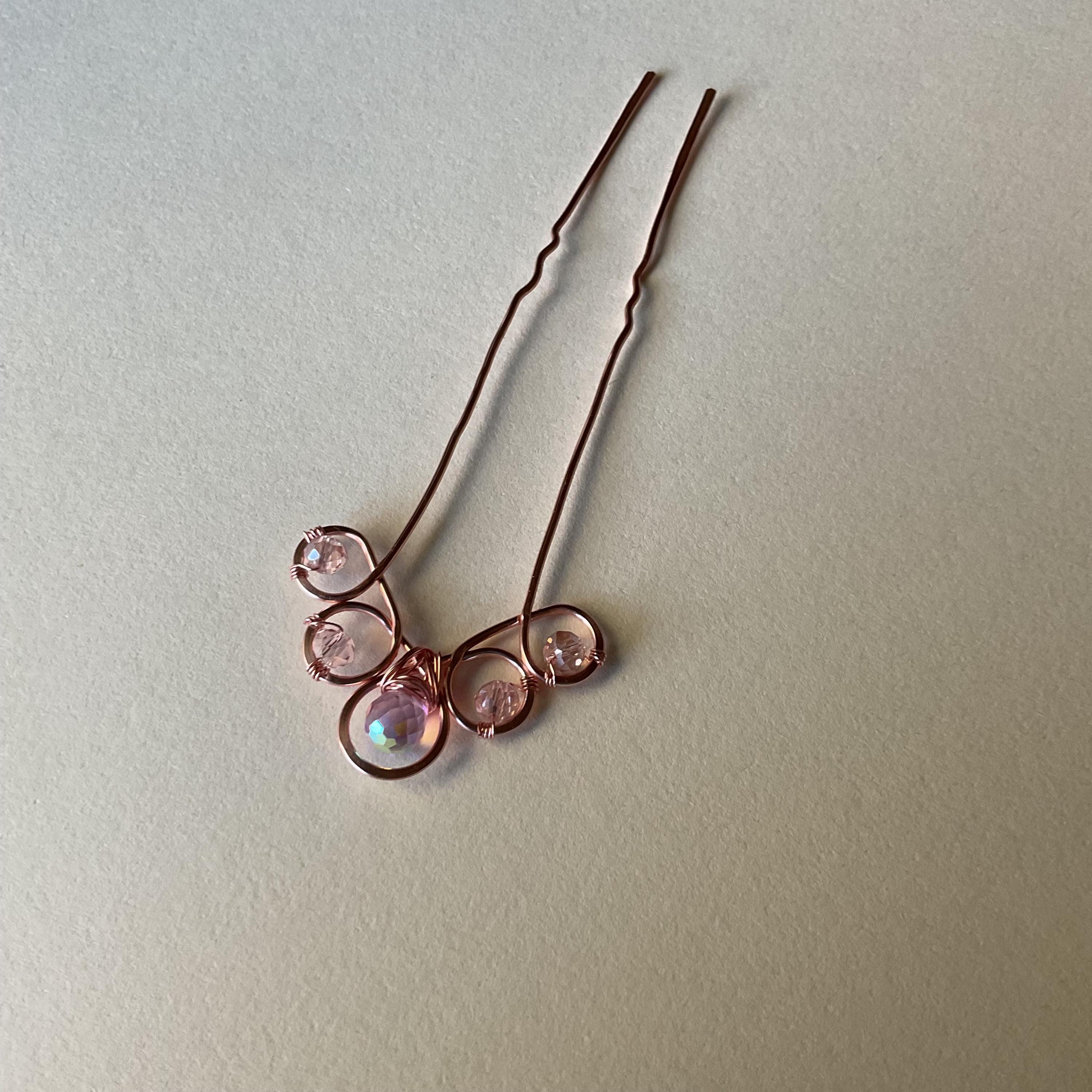 Handmade Rose Gold Wire Hair Pin with Light Pink Crystals ✨